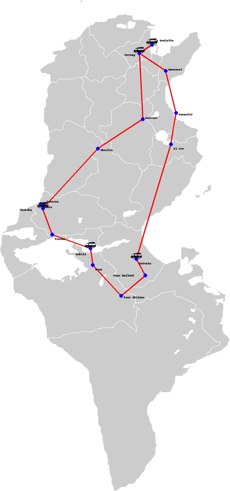 - Día 1: Puerto de La Goulette → Mornag (20 km) 8 Marzo